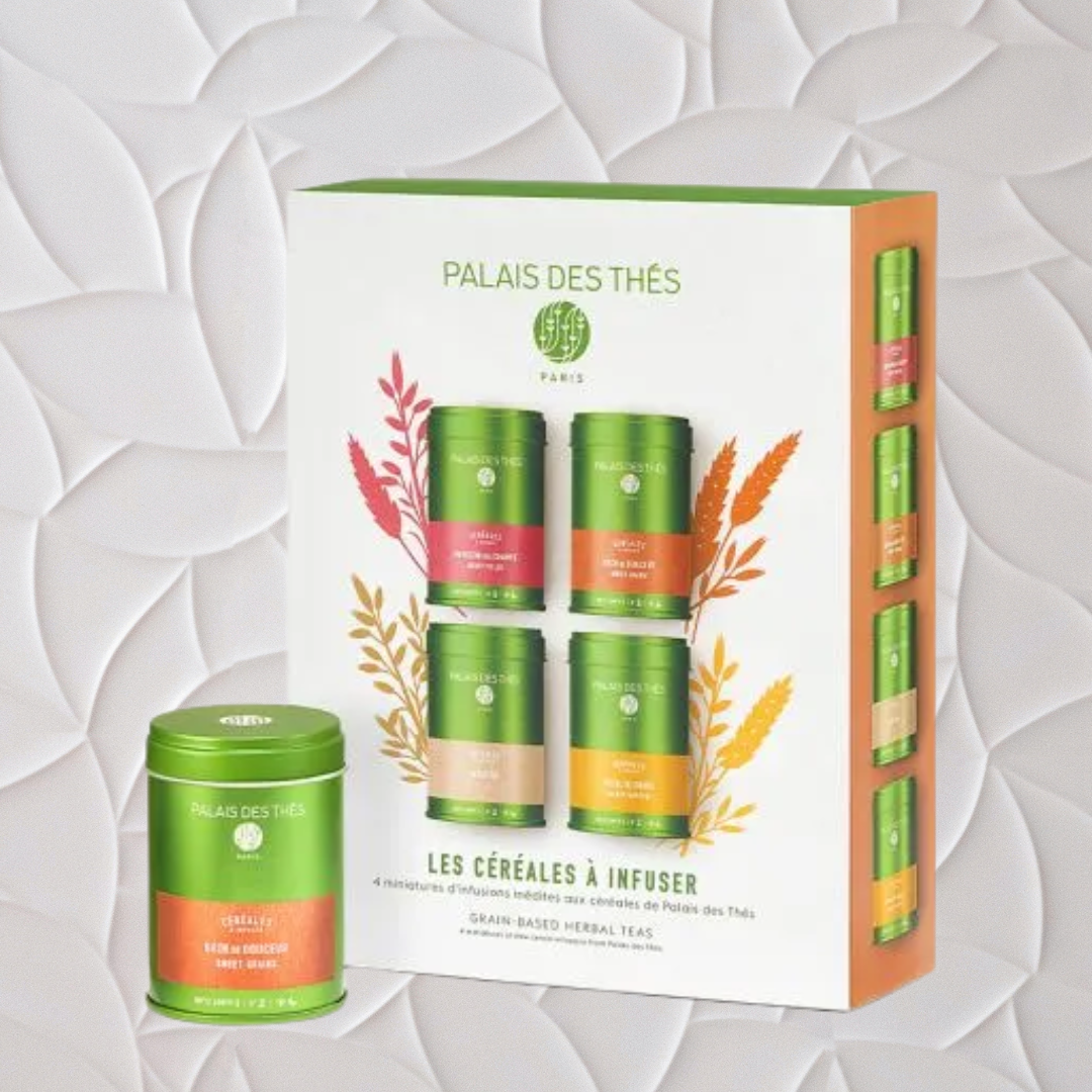 Ce coffret varié réunit quatre miniatures en boîtes métal, mêlant recettes parfumées et infusion nature :
