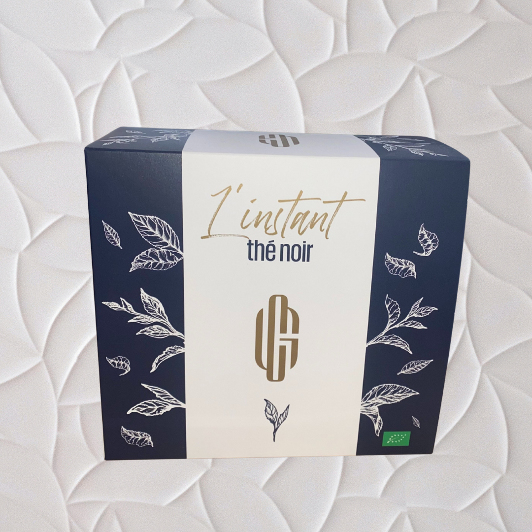 Coffret découverte L’Instant Thé Noir, une immersion intense et élégante. A l’intérieur vous trouverez une boîte de 100g de vrac ainsi que 16 sachets de thés noirs :